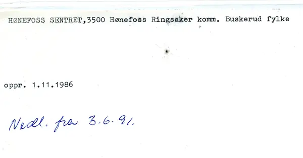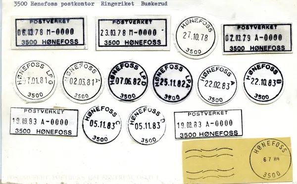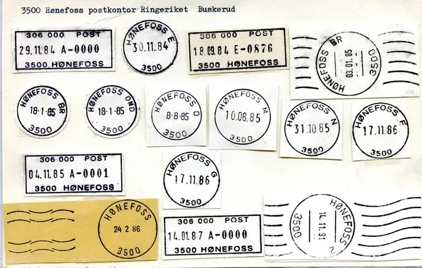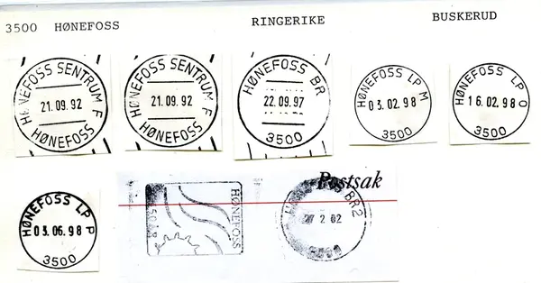 HØNEFOSS postkontor (3500 HØNEFOSS) ble fra 30.3.1998 oppgradert til postsenter. Sirk. 6, 20.3.1998.