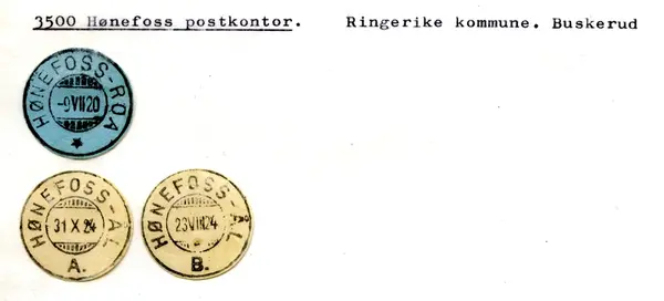 Samtidig (1.12.1853) ble opprettet en postekspedisjon med navnet HØNEFOSS posteksp., i Buskerud amt , med bipost til Nordre Land. Sirk. 23, 12.10.1853.
