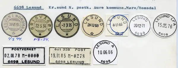 Navnet ble fra 1.8.1968 endret fra 6699 GRISVÅGØY til LESUND. Postnr ble samtidig endret til 6698. Samtidig ble det tidligere Lesund poståpneri lagt ned. Sirk. 20, 24.6.1968.