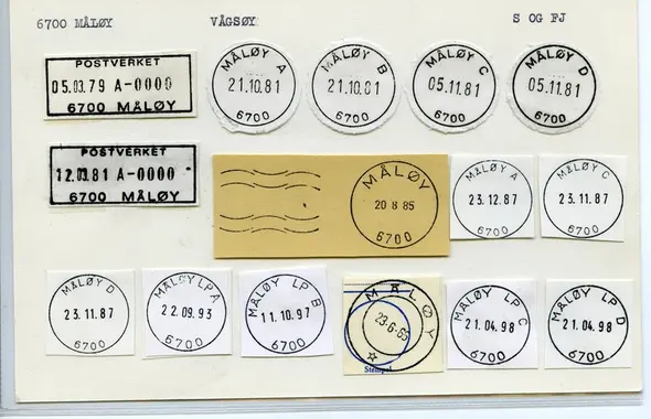 Ved omorganisering av postnummersystemet fra 1.10.2000 fikk postboksnr 1--300 tildelt postnr 6701 MÅLØY, postboksnr 301--999 fikk postnr 6702 MÅLØY, mens postboksnr 1000--1500 fikk tildewlt postnr 6703 MÅLØY.