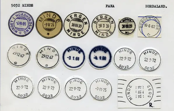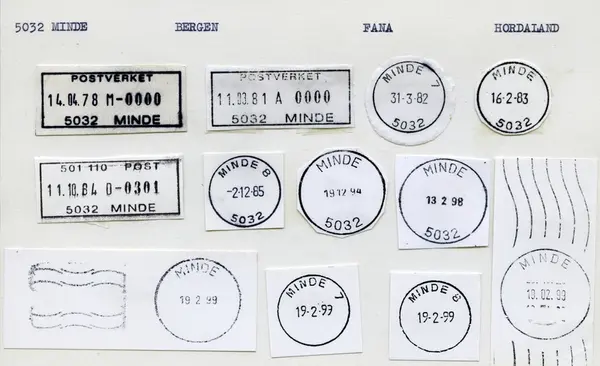 Ved omorganisering av postnummersystemet fra 1.3.1999 fikk gate- og veiadresser på MINDE i Bergen nytt postnr 5063, 5068 og 5073 BERGEN. Fra samme tidspunkt fikk postboksadressatene under postkontoret MINDE tildelt postnr 5826 BERGEN.